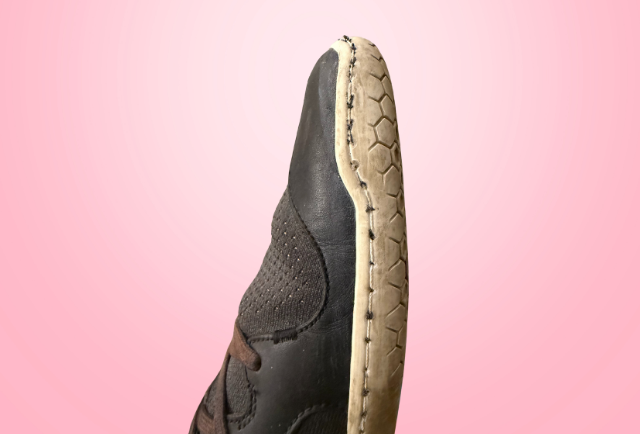 Ayakkabının tabanını boylu boyunca saran yeni dikişler olması önemli bir meseleydi, evet. Bir diğer mesele de dikişlerin arasından çıkan ve iğrenç görünen siyah ipçiklerdi.